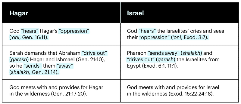 As many scholars have noted, Hagar’s experience as an Egyptian slave in Abraham and Sarah’s household shares striking parallels with the later Israelites enslaved in Egypt.(4)